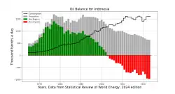 - ↑ (en) Energy Statistics Data Browser - Net energy imports, Indonesia, 1990-2022, Agence internationale de l'énergie, 21 décembre 2023.