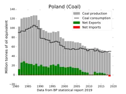 En 2023, la Pologne a importé 399 PJ de charbon, soit 27 % de sa consommation intérieure, et en exporté 307 PJ, soit 21 % de sa production[16].