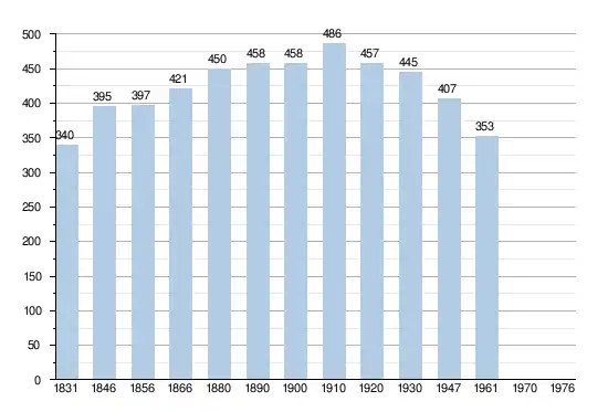 - Sources:INS, Rem:1831 jusqu'en 1970=recensements, 1976= nombre d'habitants au 31 décembre