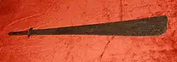 L'épée adopte une forme assez inhabituelle de couperet ou machette. Elle a une longueur de 70 cm sur, dans sa plus grande largeur, 9,4 cm[3].