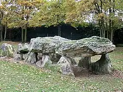 - ↑ Lors de sa découverte, ce monument se trouvait dans la commune d'Épône, le déplacement ultérieur de la limite intercommunale l'aurait placé à Aubergenville, mais le site est aujourd'hui méconnaissable