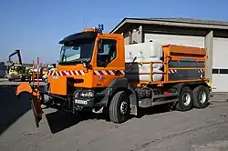 - épandeuse tractée : l'outil est équipé de roues et est remorqué par le camion porteur ;