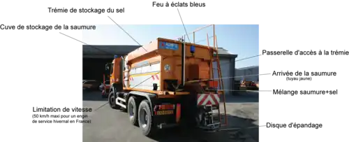 La nature du sel répandu, solide ou liquide (saumure), permet de différencier cinq classes d’épandeuses :