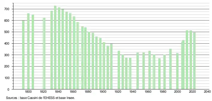 - ↑ Fiches Insee - Populations de référence de la commune pour les années 2006, 2007, 2008, 2009, 2010, 2011, 2012, 2013, 2014, 2015, 2016, 2017, 2018, 2019, 2020, 2021 et 2022.