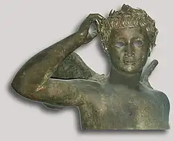 Longtemps considérée comme représentant un adolescent portant une branche d'olivier et s'apprêtant à se placer une couronne sur sa tête, l'œuvre datée d'environ 125 av. J.-C. est perçue comme typique de l'époque hellénistique. Les dernières études tendent à y voir un Éros tenant un arc, un symbole de puissance.