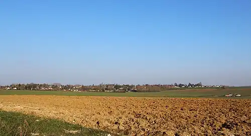 L'occupation des sols de la commune, telle qu'elle ressort de la base de données européenne d'occupation biophysique des sols Corine Land Cover (CLC), est marquée par l'importance des territoires agricoles (94 % en 2018), une proportion sensiblement équivalente à celle de 1990 (94,1 %). La répartition détaillée en 2018 est la suivante : terres arables (94 %), zones urbanisées (5,6 %), zones industrielles ou commerciales et réseaux de communication (0,4 %)[11]. L'évolution de l'occupation des sols de la commune et de ses infrastructures peut être observée sur les différentes représentations cartographiques du territoire : la carte de Cassini (XVIIIe siècle), la carte d'état-major (1820-1866) et les cartes ou photos aériennes de l'IGN pour la période actuelle (1950 à aujourd'hui)[Carte 2].