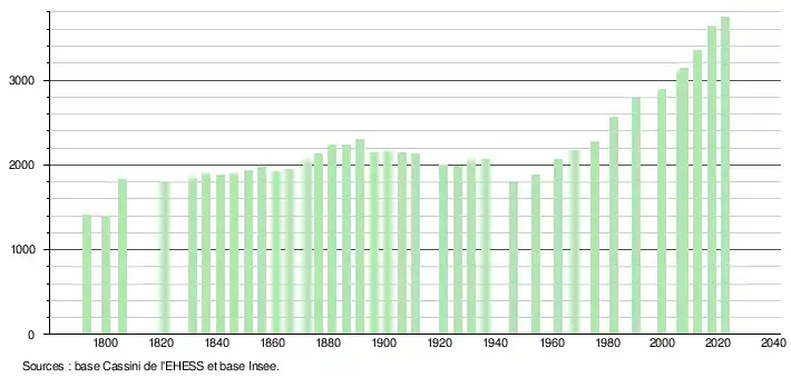 - ↑ Fiches Insee - Populations de référence de la commune pour les années 2006, 2007, 2008, 2009, 2010, 2011, 2012, 2013, 2014, 2015, 2016, 2017, 2018, 2019, 2020, 2021 et 2022.