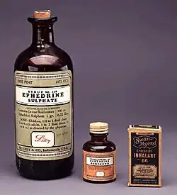 L'herbe chinoise traditionnelle Ma Huang (Ephedra sinica) contient de l'éphédrine comme principe actif principal et est utilisé comme antiasthmatique et vasoconstricteur[3]. Ceci est également vrai pour de nombreuses herbes à base d'extraits d'espèces d'Ephedra.