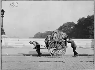 Les chiffonniers sont des chômeurs ou ouvriers très mal payés qui font la collecte de chiffons et détritus sur la voie publique ou qui trient les marchandises dans les ateliers des patrons du commerce de chiffons. Ils effectuent le tri des objets récupérés chez eux, puis vendent la marchandise pour en tirer un salaire[2].