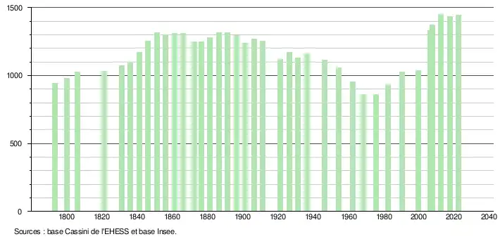 - ↑ Fiches Insee - Populations de référence de la commune pour les années 2006, 2007, 2008, 2009, 2010, 2011, 2012, 2013, 2014, 2015, 2016, 2017, 2018, 2019, 2020, 2021 et 2022.