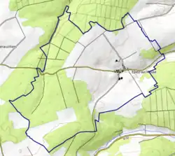 L'occupation des sols de la commune, telle qu'elle ressort de la base de données européenne d’occupation biophysique des sols Corine Land Cover (CLC), est marquée par l'importance des territoires agricoles (55 % en 2018), en augmentation par rapport à 1990 (54,1 %). La répartition détaillée en 2018 est la suivante : forêts (45 %), terres arables (44,3 %), prairies (10,8 %)[14]. L'évolution de l’occupation des sols de la commune et de ses infrastructures peut être observée sur les différentes représentations cartographiques du territoire : la carte de Cassini (XVIIIe siècle), la carte d'état-major (1820-1866) et les cartes ou photos aériennes de l'IGN pour la période actuelle (1950 à aujourd'hui)[Carte 2].