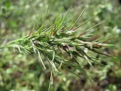 Un épillet ou “espigaou” d'Hordeum murinum en microphotographie : on distingue les barbillons qui interdisent toute rétrogression ou retour en arrière.