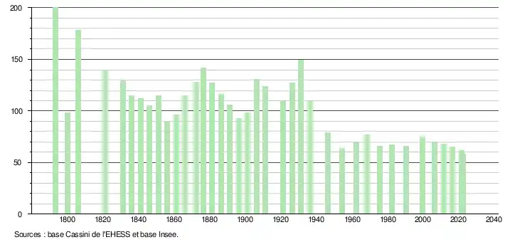 (Sources : Ldh/EHESS/Cassini jusqu'en 1999[26] puis Insee à partir de 2006[27].)