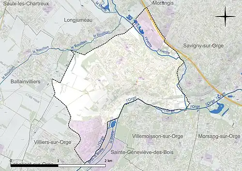 Le territoire de la commune est arrosé par trois rivières : à l’extrémité nord coule d’ouest en est l’Yvette sur deux kilomètres jusqu’à sa confluence avec l’Orge qui coule du sud au nord sur la frontière est de la commune, parcourant trois kilomètres. À proximité des Rossay, elle forme un second bras naturel pour juste avant sa sortie du territoire, en amont sur les terrains d’alluvion du Breuil, plusieurs bras et étangs sont formés et grossis par le ruisseau la Boële dans la commune voisine de Villemoisson-sur-Orge.
