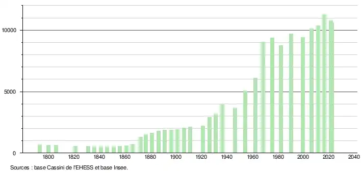 - ↑ Fiches Insee - Populations de référence de la commune pour les années 2006, 2007, 2008, 2009, 2010, 2011, 2012, 2013, 2014, 2015, 2016, 2017, 2018, 2019, 2020, 2021 et 2022.