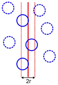 Par unité de volume, seules les particules située à moins d'un rayon de distance du front d'interface peuvent intersecter le front. Si ce front est plan, la proportion de particules affectées est :