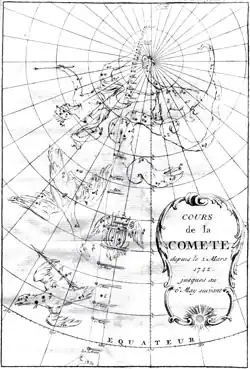 - ↑ Initialement, « Le directeur de l’Observatoire de Paris, Jean-Dominique Cassini, semble ignorer les théories de Newton et de Halley. » 50 ans plus tard, son fils Jacques se rallie à la conception newtonienne et héliocentrique du système solaire. Il écrit : « …nous n’avons pas cru devoir nous écarter du sentiment le plus communément reçu des Astronomes, que ce sont des Planètes qui font leurs révolutions autour du Soleil, à l’égard duquel elles [les comètes] décrivent des Orbes fort excentriques. » F. Michel, Les comètes observées en France au début du XVIIIe siècle.