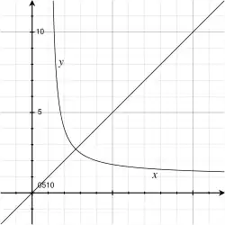 Ainsi, la ligne et la courbe se croisent lorsque x = y = e.