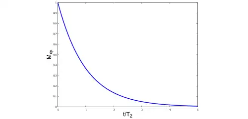 - –Mxy′(t) / T2 décrit la perte en cohérence de l'aimantation transversale.