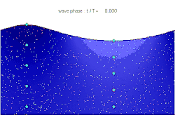 On a linéarisé la condition limite en surface en la ramenant à z = 0. En réalité, il existe une vitesse de dérive de Stokes qui est une faible vitesse moyenne des particules fluides parallèlement à la surface (voir figures). Sa valeur peut être estimé à partir de considérations très générales[ 4]