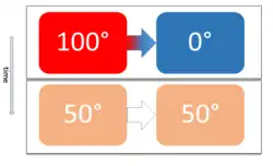 Supposons une évolution dans laquelle un corps 1, ayant une température élevée , transmet de la chaleur à un corps 2, ayant une température basse . À l'équilibre ils atteignent la température . Les deux corps échangent les chaleurs :