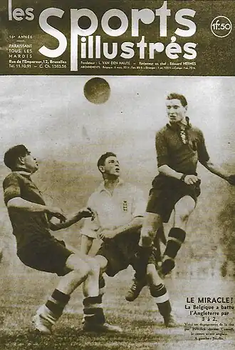 Quatre ans plus tard, la Belgique se qualifie de justesse pour la Coupe du monde 1934 organisée en Italie, pour avoir concédé un but de moins que l'Irlande face aux Pays-Bas[23]. Elle y est éliminée dès les huitièmes de finale par l'Allemagne, (2-5)[24] après avoir mené (2-1) à la mi-temps, les deux buts belges étant inscrits par Bernard Voorhoof, le seul participant national à trois éditions consécutives de l'épreuve planétaire avant guerre.