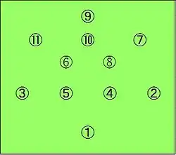 Les numéros des joueurs correspondent initialement aux postes des joueurs. Dans une répartition simplifiée :