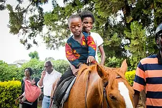 Les recherches menées à l'université de Washington en 2014 concluent également que l'équithérapie « peut améliorer de manière significative l'équilibre, la réactivité sociale et d'autres événements de la vie »[68]. Pour combler le manque d'études comparatives, 13 enfants avec TSA participent à 9 semaines d'équithérapie, et sont comparés à 12 enfants pris en charge par des programmes sociaux non-équins. Les parents notent une amélioration physique, émotionnelle et sociale significative chez leur enfant après les 6 premières semaines, supérieure à celle des enfants qui participent au programme non-équin[69].