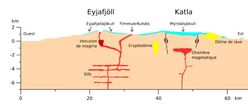 | Zone d'activité | Fimmvörðuháls (63° 38′ 14″ N, 19° 26′ 37″ O) Caldeira sous-glaciaire (63° 37′ 54″ N, 19° 37′ 47″ O) |