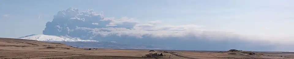 L'éruption de l'Eyjafjöll en 2010 est une éruption volcanique qui débute le sur l'Eyjafjöll, un volcan du Sud de l'Islande, et prend fin le . Sa première phase éruptive se déroule au Fimmvörðuháls, un col libre de glace entre les calottes glaciaires d'Eyjafjallajökull et de Mýrdalsjökull, et se manifeste par des fontaines et des coulées de lave qui se tarissent le 12 avril. Le 14 avril, la lave refait son apparition dans la caldeira du volcan recouverte par l'Eyjafjallajökull. Elle provoque une importante fonte de la glace ce qui entraîne des jökulhlaups, des inondations glaciaires brutales et destructrices, ainsi que la formation d'un important panache volcanique composé de vapeur d'eau, de gaz volcaniques et de cendres. Ces dernières, poussées par les vents dominants qui les rabattent sur l'Europe continentale, entraînent d'importantes perturbations dans le transport aérien dans le monde avec la fermeture de plusieurs espaces aériens et de nombreuses annulations de vols jusqu'au 20 avril. À partir de cette date, l'activité éruptive est moins explosive mais se maintient à un niveau soutenu avec notamment la formation d'une nouvelle coulée de lave. Une activité purement phréatique remplace ces manifestations magmatiques le 23 mai jusqu'en juin. La fin de l'éruption n'est cependant annoncée que plusieurs mois plus tard, le 27 octobre.