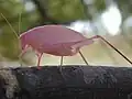 La coloration rose ou rougeâtre peut être un camouflage qui aide certains individus à leur survie dans un milieu composé de plantes rouges[4]. Il est également admis que la mutation érythrique est en fait un trait dominant chez les espèces de sauterelle, même si elle est défavorable, en raison de la coloration majoritairement verte de leur biotope. Par conséquent, la plupart des sauterelles de couleur rose ou d'autres couleurs vives ne survivent pas à l'âge adulte, et cette observation explique leur rareté[5].