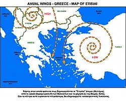 L’étésien (meltémi (μελτέμι) en grec, meltem en turc[1]) est un vent puissant de secteur Nord, Nord-est qui souffle périodiquement sur la Méditerranée orientale : la dénomination est durant l'antiquité généralisée à tous les vents qui soufflent pendant l'été et sont envoyés par Zeus pour rafraichir l'atmosphère.