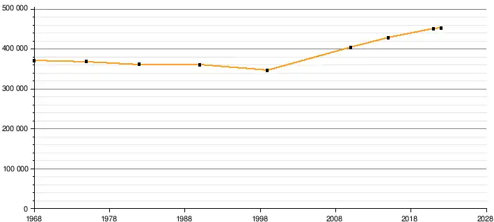 La population a donc cru de 1,4 % par an entre 2011 et 2016, et de 0,7 % par an entre 2016 et 2022[9].