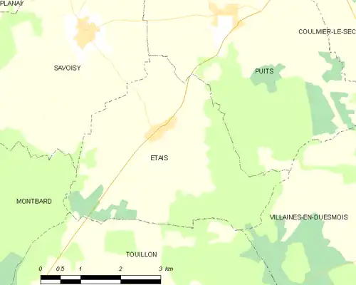 - ↑ « Orthodromie entre Étais et Montbard », sur fr.distance.to (consulté le ).
