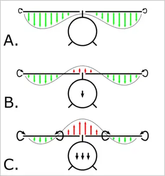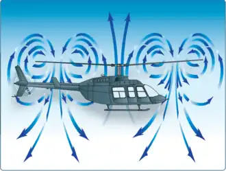 En vol normal, un flux d'air descendant est généré par le rotor principal au niveau de chaque pale. Ce flux d'air descendant est le plus fort au niveau du milieu de la pale. Il est moindre à l'intérieur de la pale, au niveau du moyeu (vitesse de rotation de la pale plus faible) et moindre à l'extrémité extérieure de la pale (recirculation latérale de l'air).