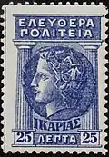 - ↑ « Lot 1619 - greece - ikaria ikaria - Athens Auctions Mail Auction #17 of Greece & Europe Stamps & Postcards », sur StampCircuit, (consulté le )
