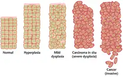 Comme exemples d'affections précancéreuses, on peut citer les dysplasies pouvant survenir au cours de la gastrite chronique à Helicobacter pylori, l'endobrachyœsophage par reflux gastro-œsophagien, le condylome à papillomavirus du col utérin, un adénome du côlon[1].