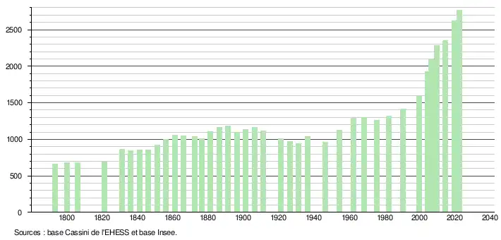 - ↑ Fiches Insee - Populations de référence de la commune pour les années 2006, 2007, 2008, 2009, 2010, 2011, 2012, 2013, 2014, 2015, 2016, 2017, 2018, 2019, 2020, 2021 et 2022.