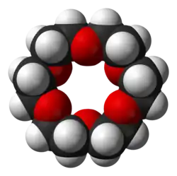 Les plus simples ont 4, 5 ou 6 atomes d'oxygène reliés par des ponts alkyle. Leur cavité centrale permet de piéger des cations tels que Na+, Li+, K+, NH4+ par recouvrement orbitalaire avec les doublets non-liants des atomes d'oxygène.