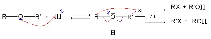 Il peut y avoir rupture de la liaison C-O, en présence d'halogénure d'hydrogène (principalement iodure) :
