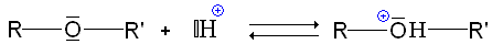 - Les doublets donnent aux éther-oxydes des propriétés de base de Brønsted, indifférente dans l'eau (pKA de l'ordre de −3,5) :