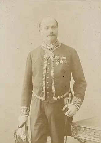 - ↑ Il a été fait chevalier de la légion d'honneur en octobre 1882 et officier en décembre 1886