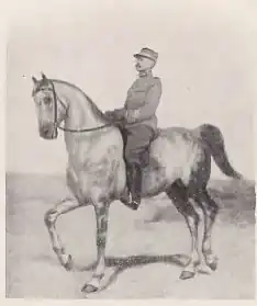 - Robertsart II (1910-1916), Anglo-barbe, son plus célèbre cheval, qui demande, avant de passer entre ses mains, six hommes pour être tenu au montoir. Monté en concours hippique, il gagne en cross et en steeple-chase[23] ;