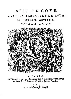 - Airs avec la tablature de luth, premier livre. Paris : Pierre I Ballard, 1624, 4°. Guillo 2003 n° 1624-F.