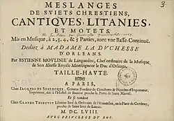 Étienne Moulinié[1] est un compositeur français de la période baroque né le à Lauran (devenu Laure-Minervois), à proximité de Carcassonne, et mort entre février et novembre 1676.