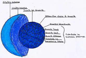 Un dessin montrant les différentes composantes de l'étoile à quarks.