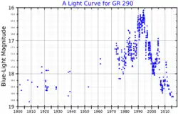 - 1 2 3 4 5 6 Polcaro, O. Maryeva, R. Nesci, M. Calabresi, A. Chieffi, S. Galleti, R. Gualandi, R. Haver, O. F. Mills, W. H. Osborn, A. Pasquali, C. Rossi, T. Vasilyeva et R. F. Viotti, « GR 290 (Romano's Star). II. Light History and Evolutionary State », The Astronomical Journal, vol. 151, no 6, , p. 149 (DOI 10.3847/0004-6256/151/6/149, Bibcode 2016AJ....151..149P, arXiv 1603.07284)