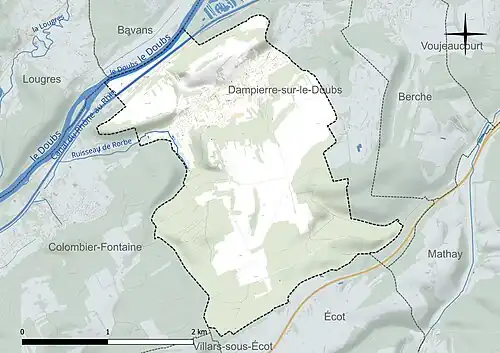 Les communes limitrophes sont Bavans, Colombier-Fontaine, Dampierre-sur-le-Doubs, Lougres, Villars-sous-Écot et Écot.