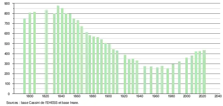 - ↑ Fiches Insee - Populations de référence de la commune pour les années 2006, 2007, 2008, 2009, 2010, 2011, 2012, 2013, 2014, 2015, 2016, 2017, 2018, 2019, 2020, 2021 et 2022.