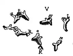 - ↑ (en) Romer, Alfred Sherwood, Parsons, Thomas S. (1977) The Vertebrate Body, Philadelphia, PA: Holt-Saunders International. p. 481-482. (ISBN 0-03-910284-X).